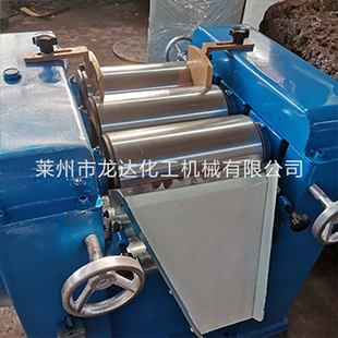 通過水平的三根輥筒的表面相互擠壓及不同速度的摩擦而達到研磨效果。三輥研磨機的輥筒材質為冷硬合金鑄鐵離心鑄造而成。